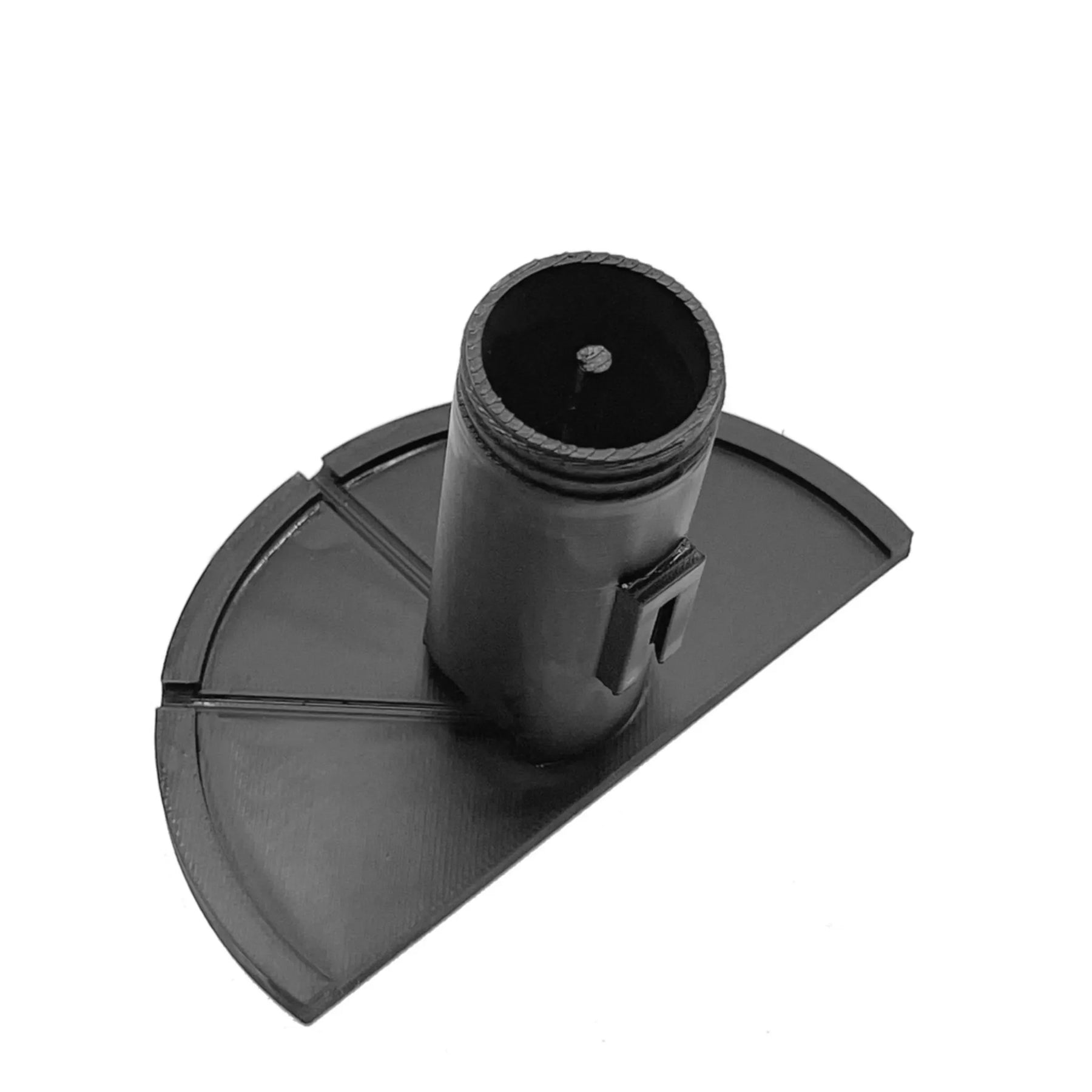Incorpora um tabuleiro inclinado com drenagem, um tubo elevado e uma haste central para evitar o deslocamento.